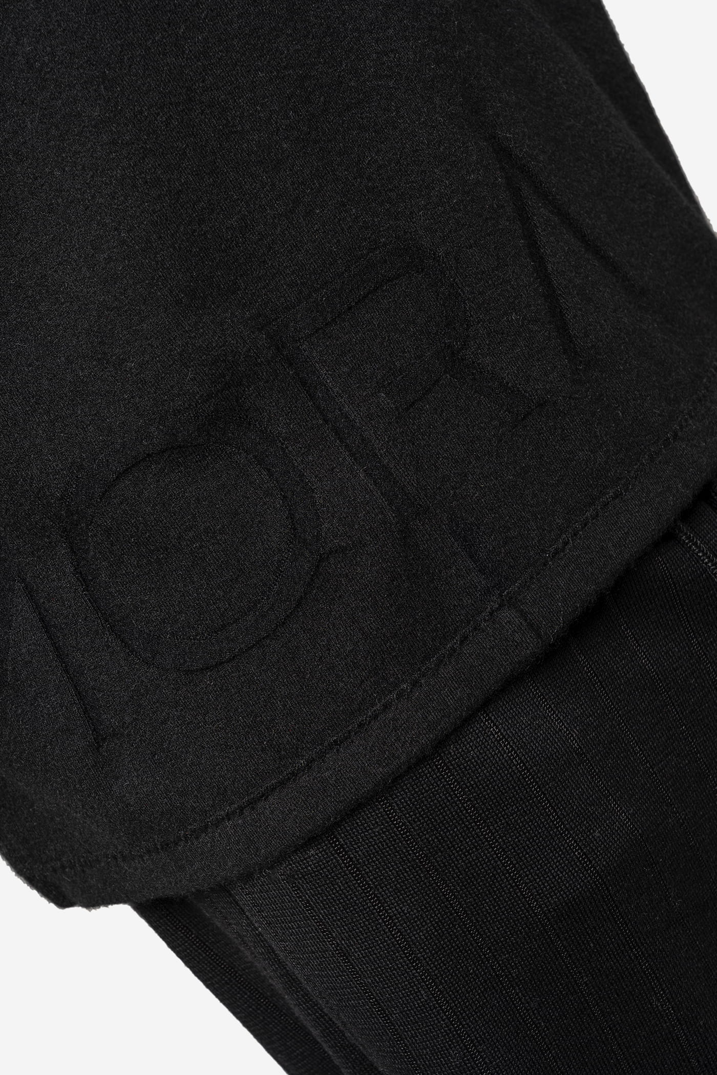Presenta una lavorazione sui bordi, con polsini e collo a costine.